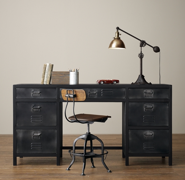 • Desk features 3 drawers plus a center drawer with a drop-down front and 2 cord cutouts for optional use as a keyboard tray • Hand-applied finishes make each piece unique care Wipe with a soft, dry cloth. vintage locker collection antique steel 4-Door Cabinet (Steel) 3-Door Perforated Cabinet 9-Door Cabinet (Dark Steel) Desk ... Read More